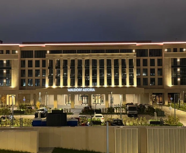 Отель Waldorf Astoria Minsk построили на месте снесенного здания «Белэкспо». Изначально строительным проектом в этом месте собирались заниматься инвесторы из Омана. Однако, позднее на их место пришли инвесторы из ОАЭ. Здание располагается на улице Янки Купалы, дом 27. Ранее заявлялось, что открытие отеля произойдет в первом квартале 2026 года, но в середине декабря я обнаружил, что бронирования проживаний в отеле стали доступны уже на ближайшие дни. Стоимость проживания на ближайшие месяцы в основном составляет 418$.