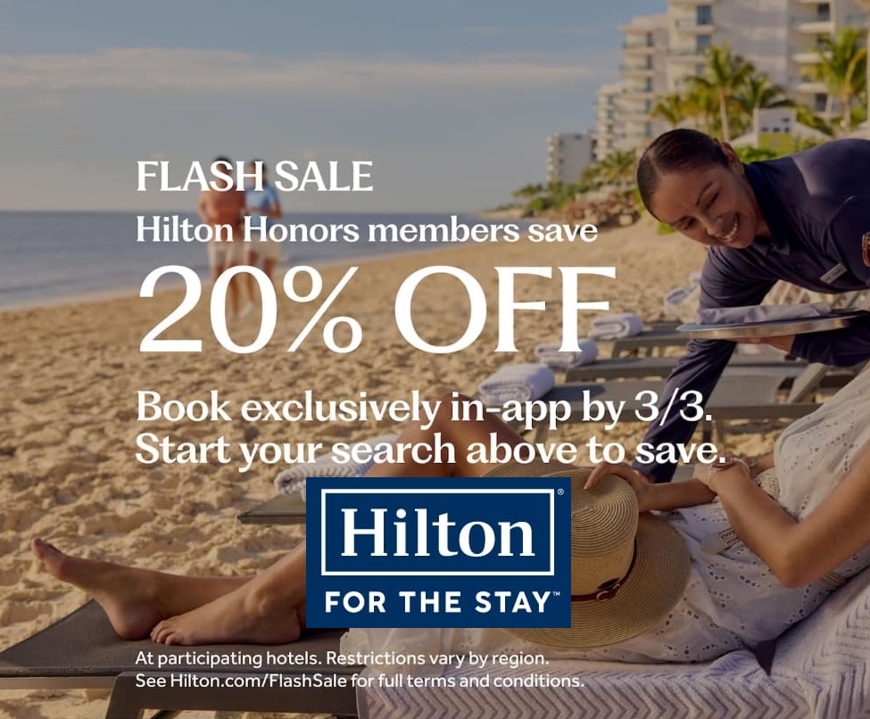 С 20 февраля по 03 марта Hilton проводит акцию, предлагая скидку 20% на все забронированные через мобильное приложение проживания длительностью от 2 ночей в отелях сети в регионах AMER и EMEA с 05 марта по 30 мая, и в регионе APAC с 05 марта по 15 декабря.